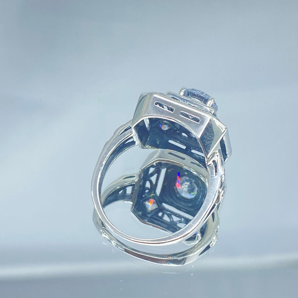 White CZ Art Deco Ring, Size 5, Faux Diamond 1930's Revival Jewelry #D68 - Ready to Ship