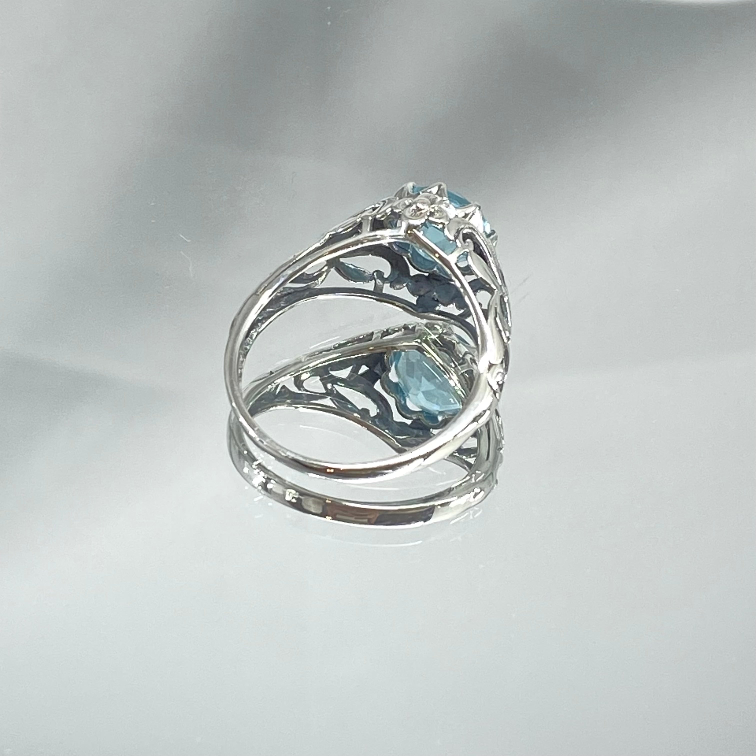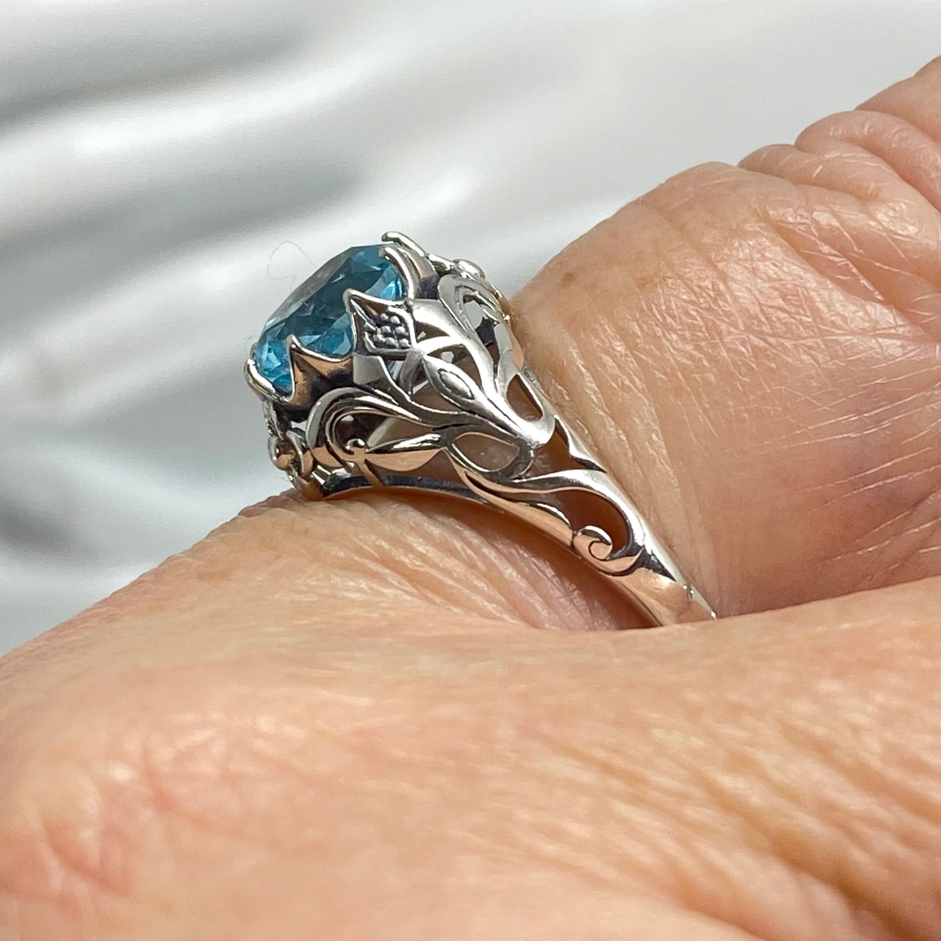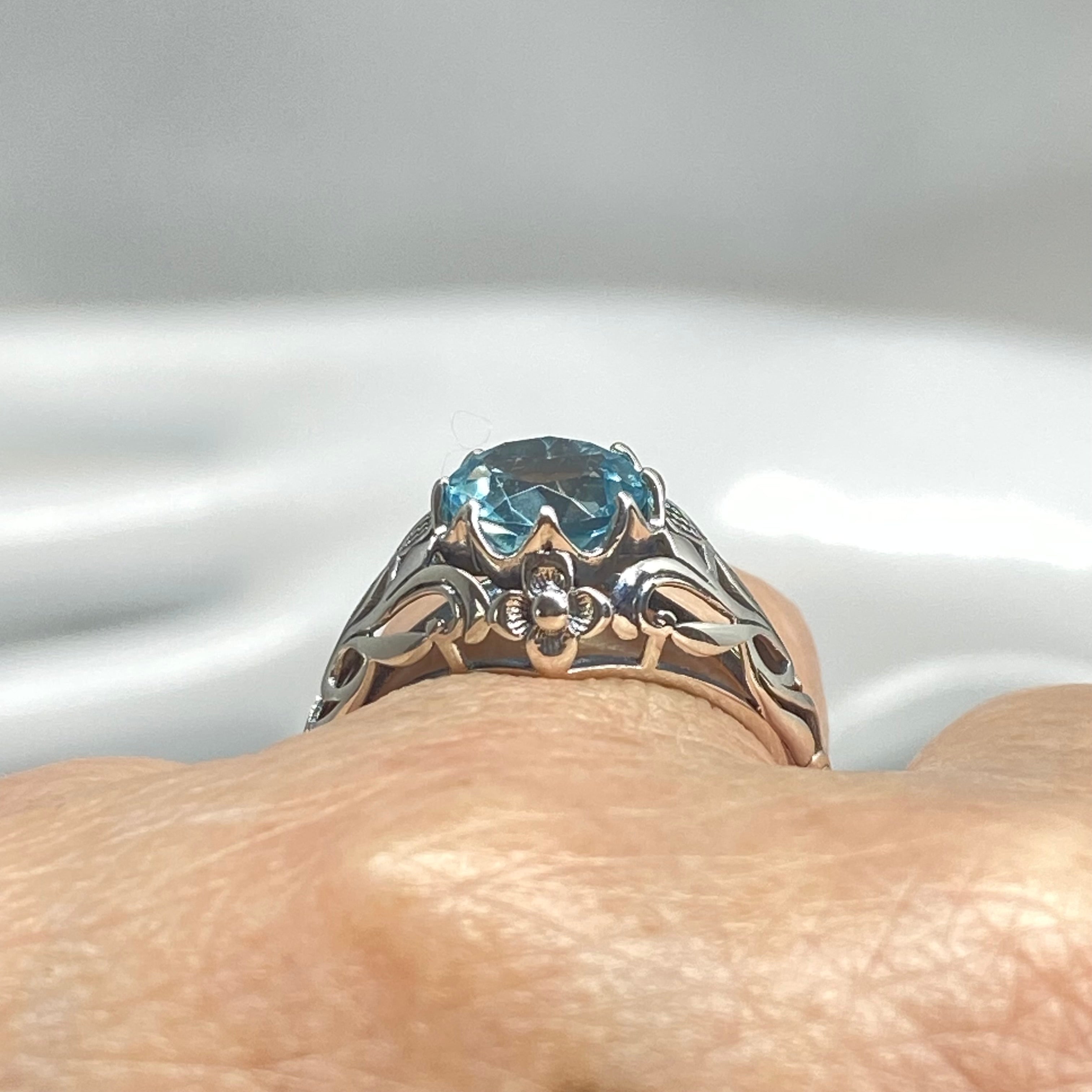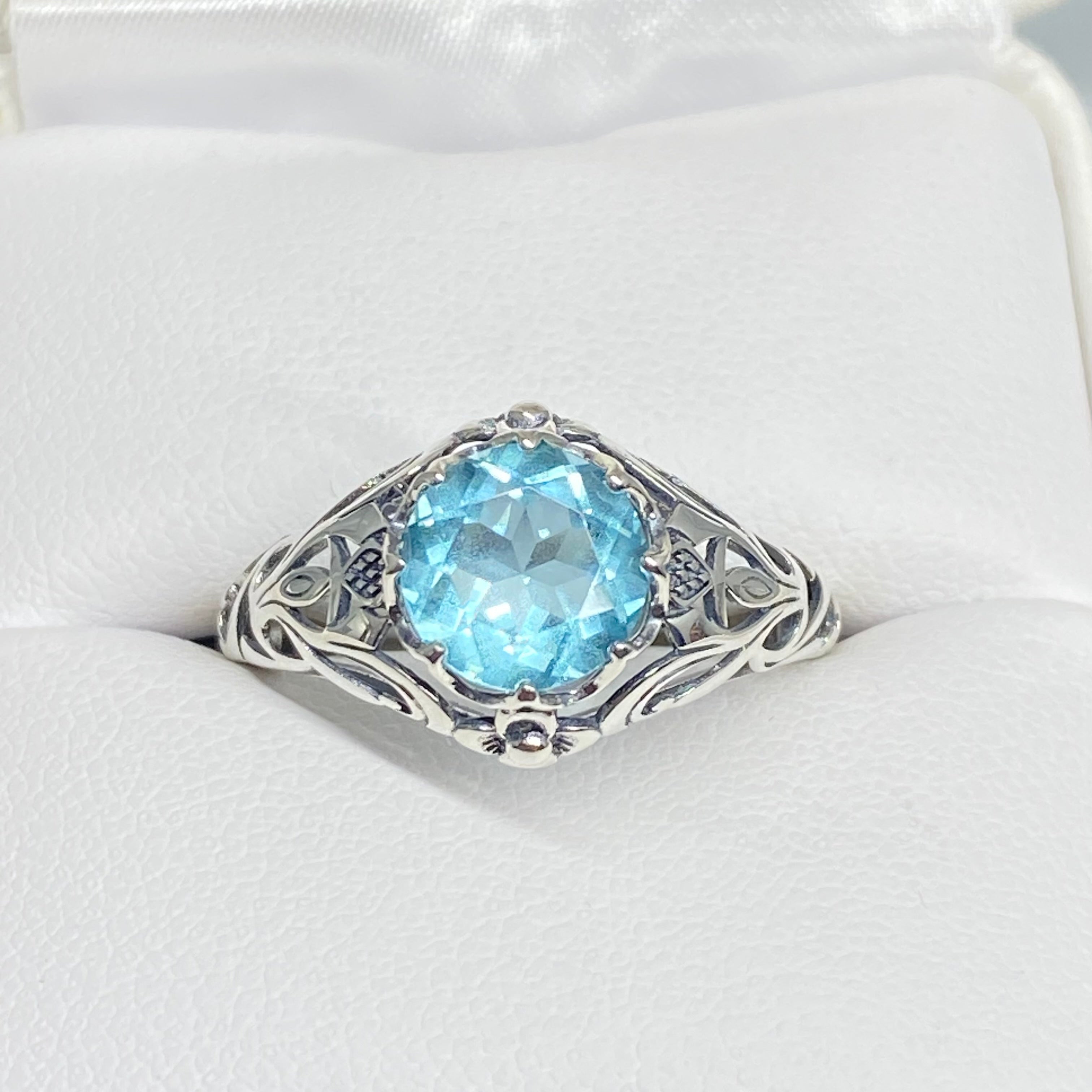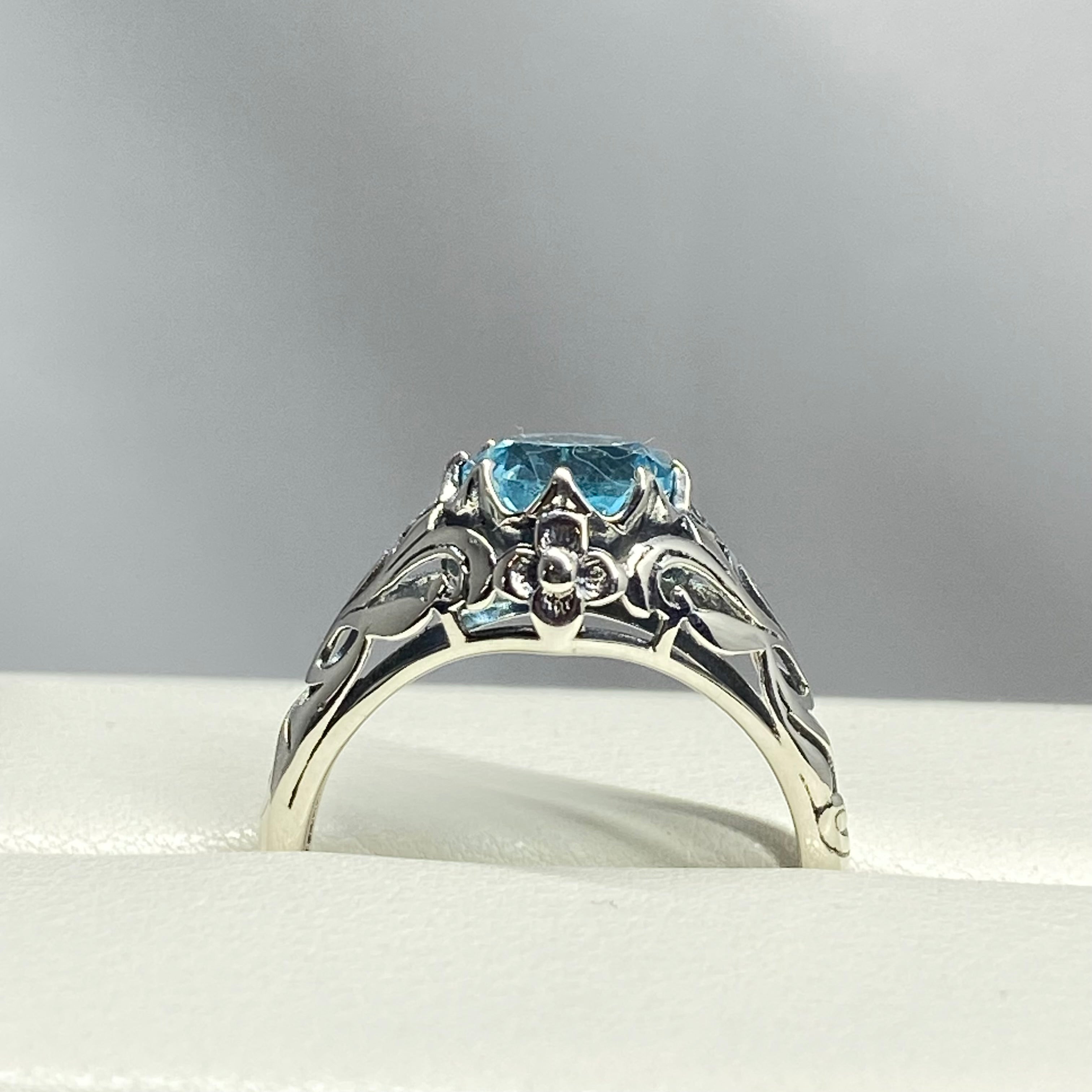 Sky Blue Topaz Ring, Size 8.5, Daisy Filigree Victorian Jewelry #D66 - Ready to Ship