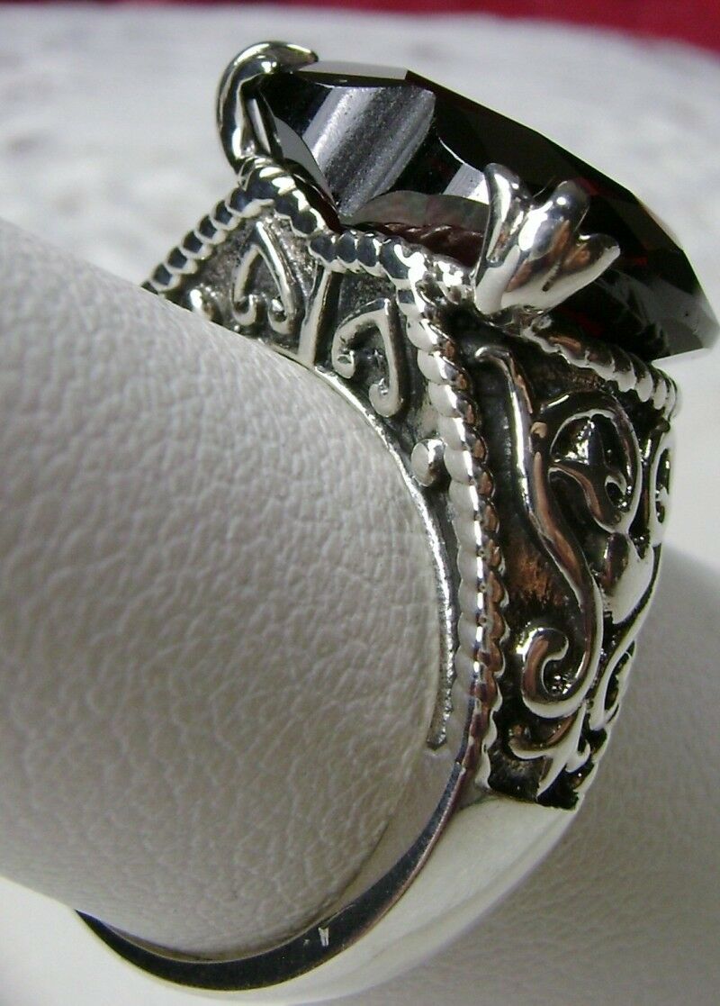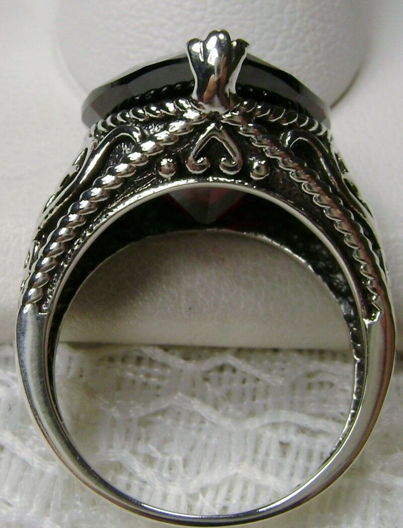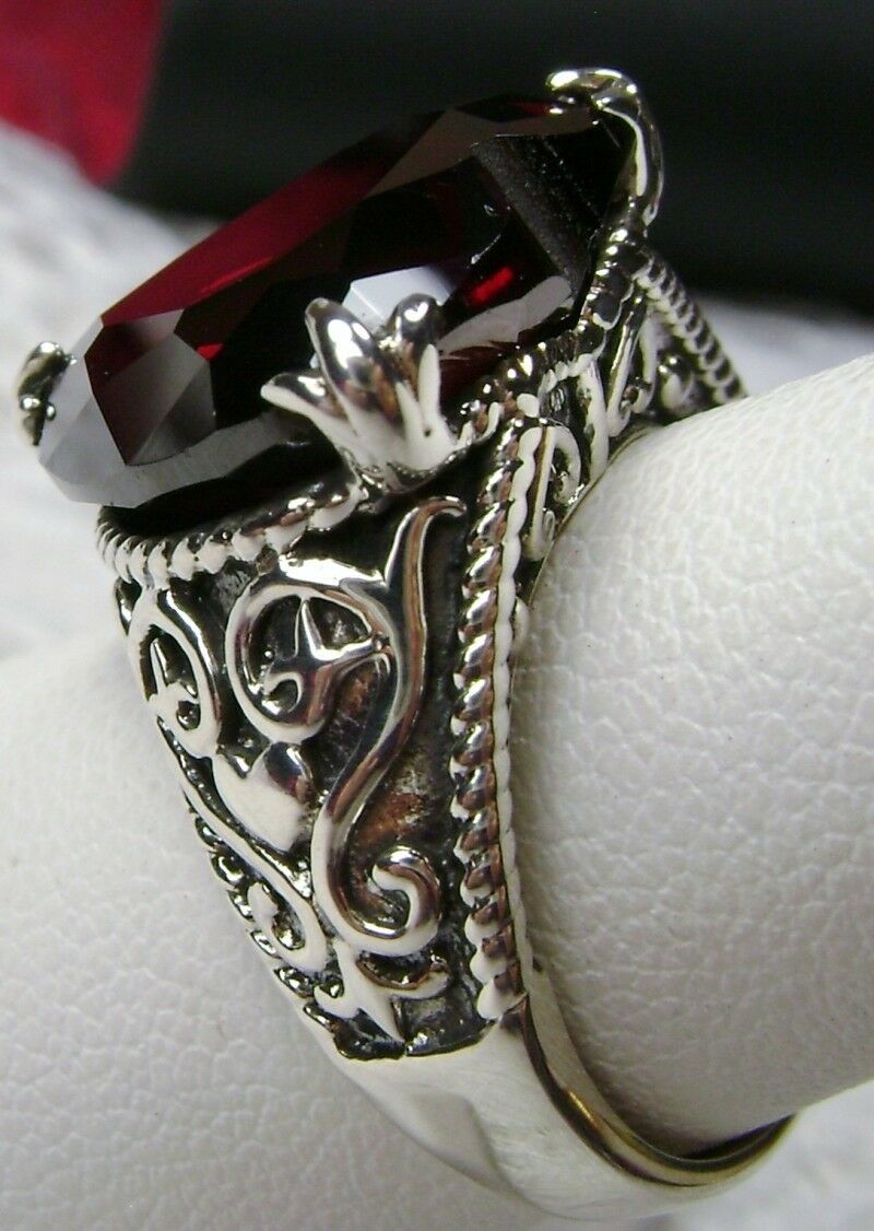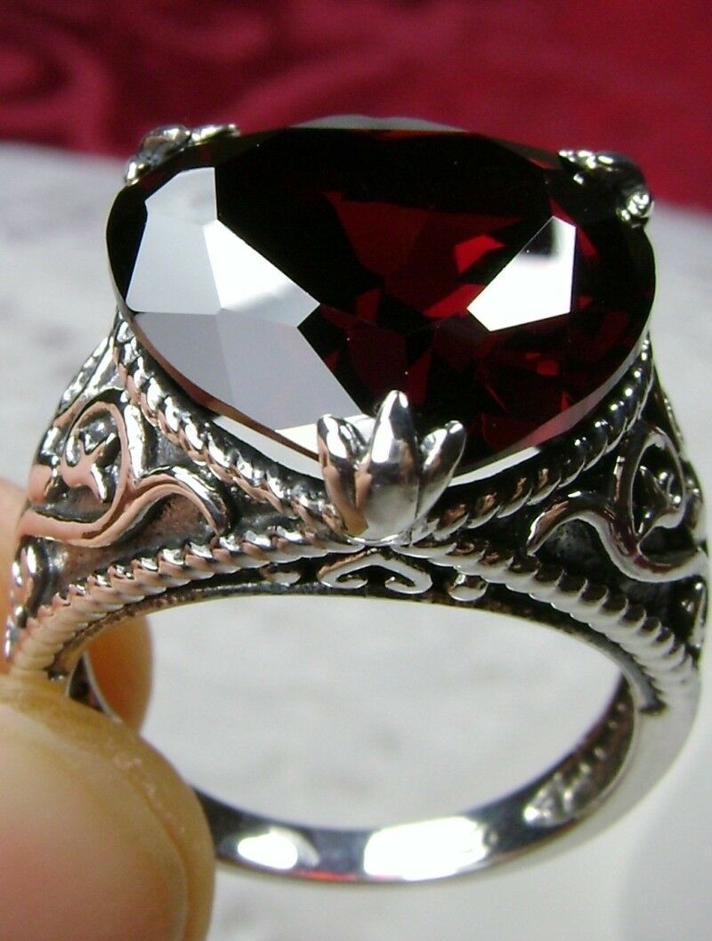 Discover the allure of history with this exquisite antique-inspired ring, masterfully crafted in sterling silver. Drawing from the enchanting styles of Gothic and Renaissance designs, this piece showcases a breathtaking 10ct flawless Red Garnet Cubic Zirconia gem.