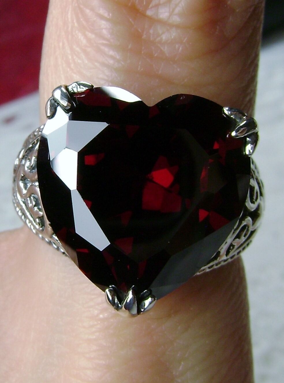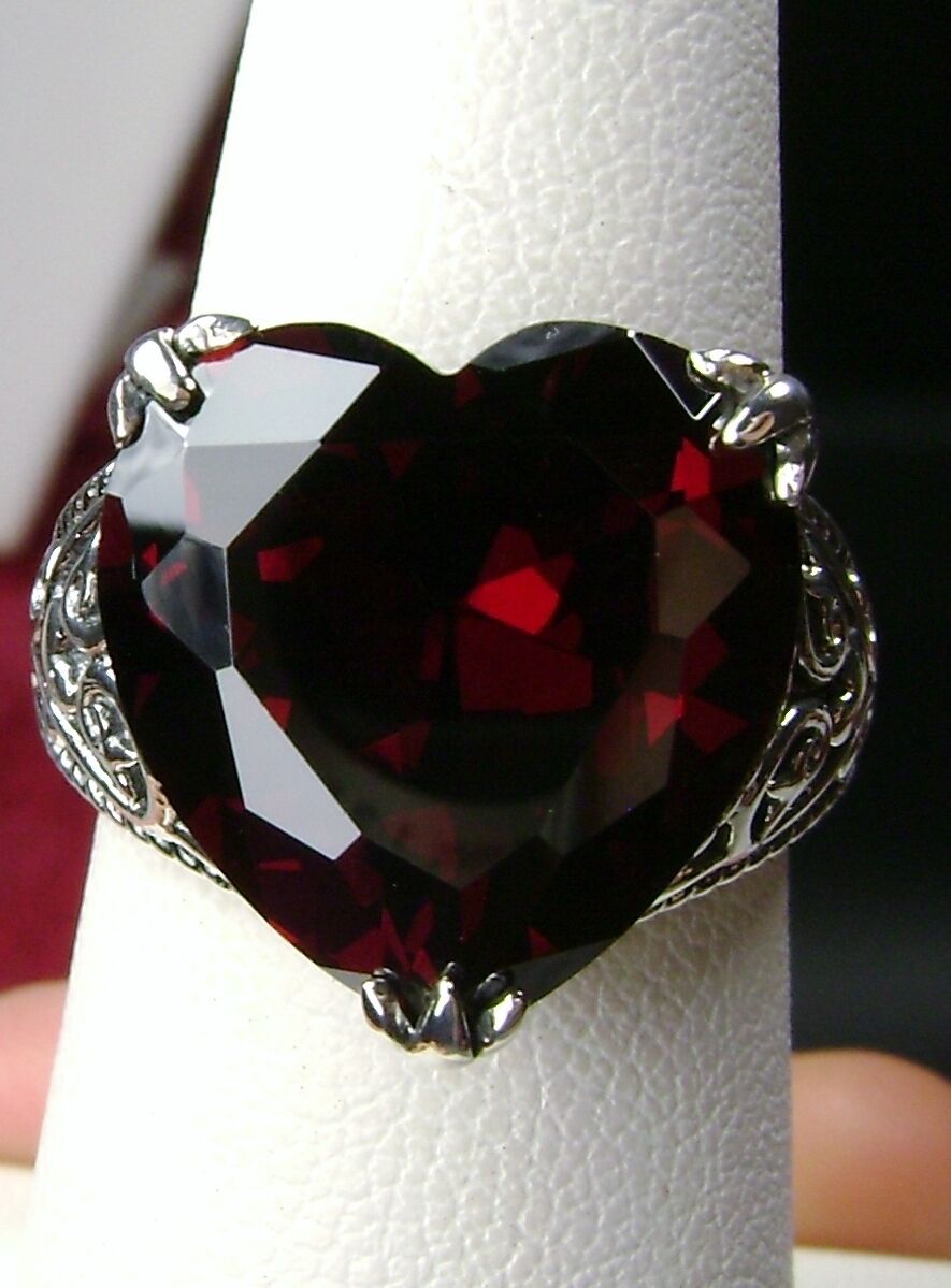 Garnet CZ Ring, Size 9, Heart Gem, Gothic Filigree Jewelry #D132 - Ready to Ship