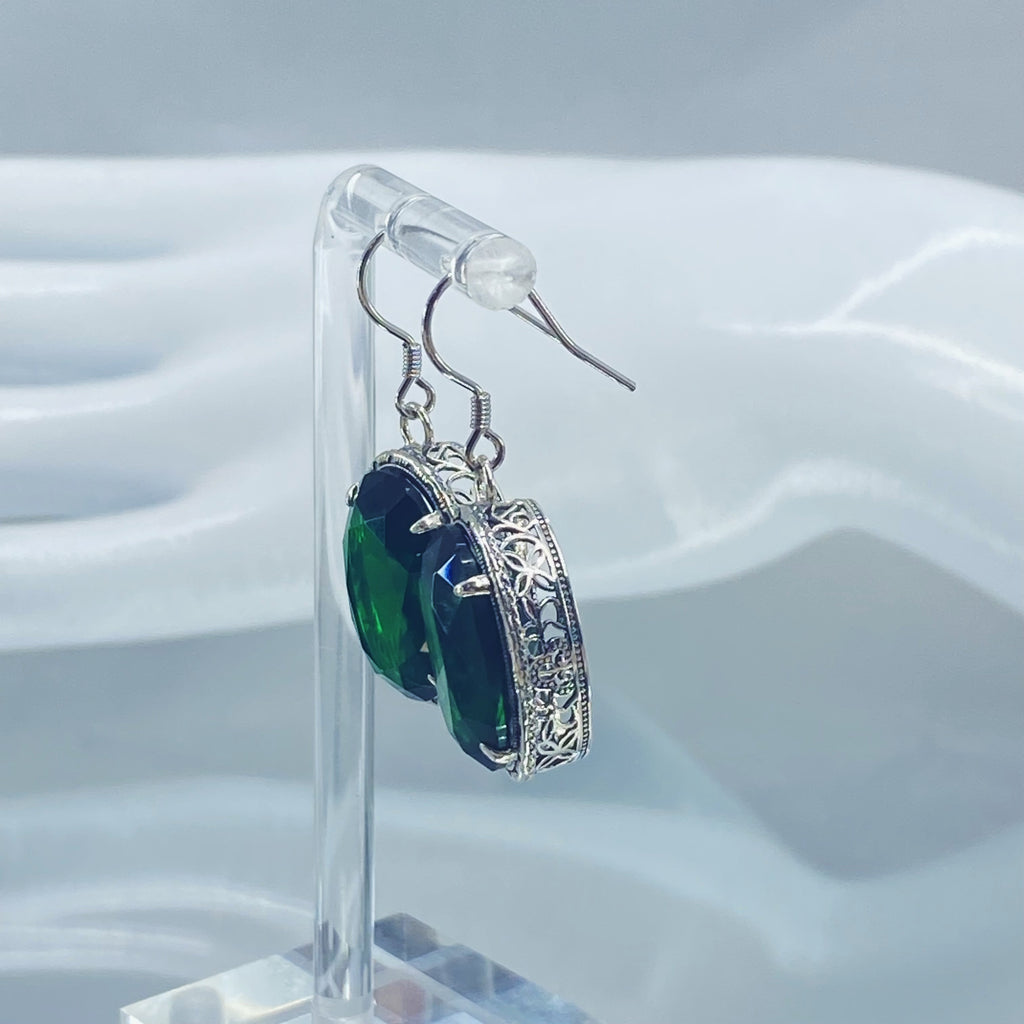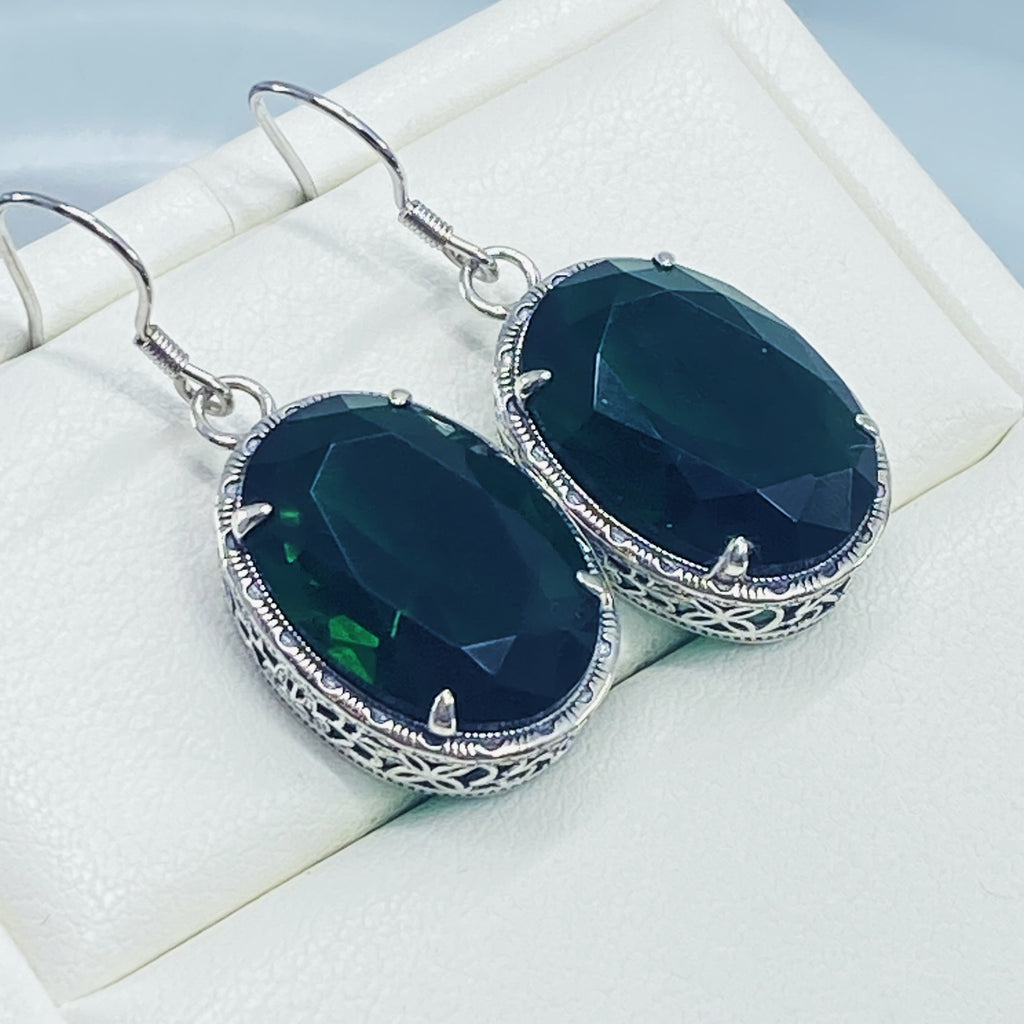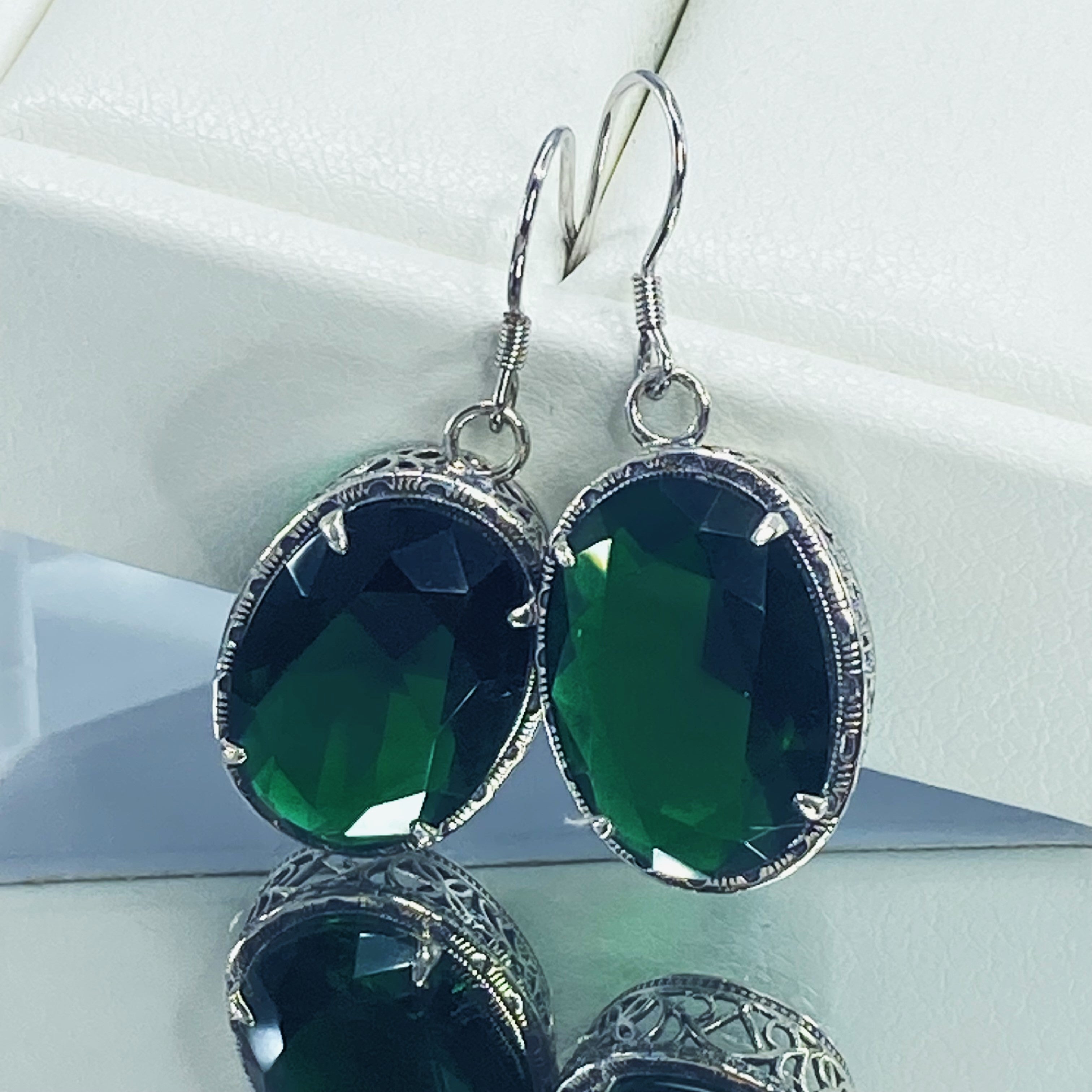 Emerald Earrings, Oval Gemstones, Victorian style Filigree, Persian Design E230