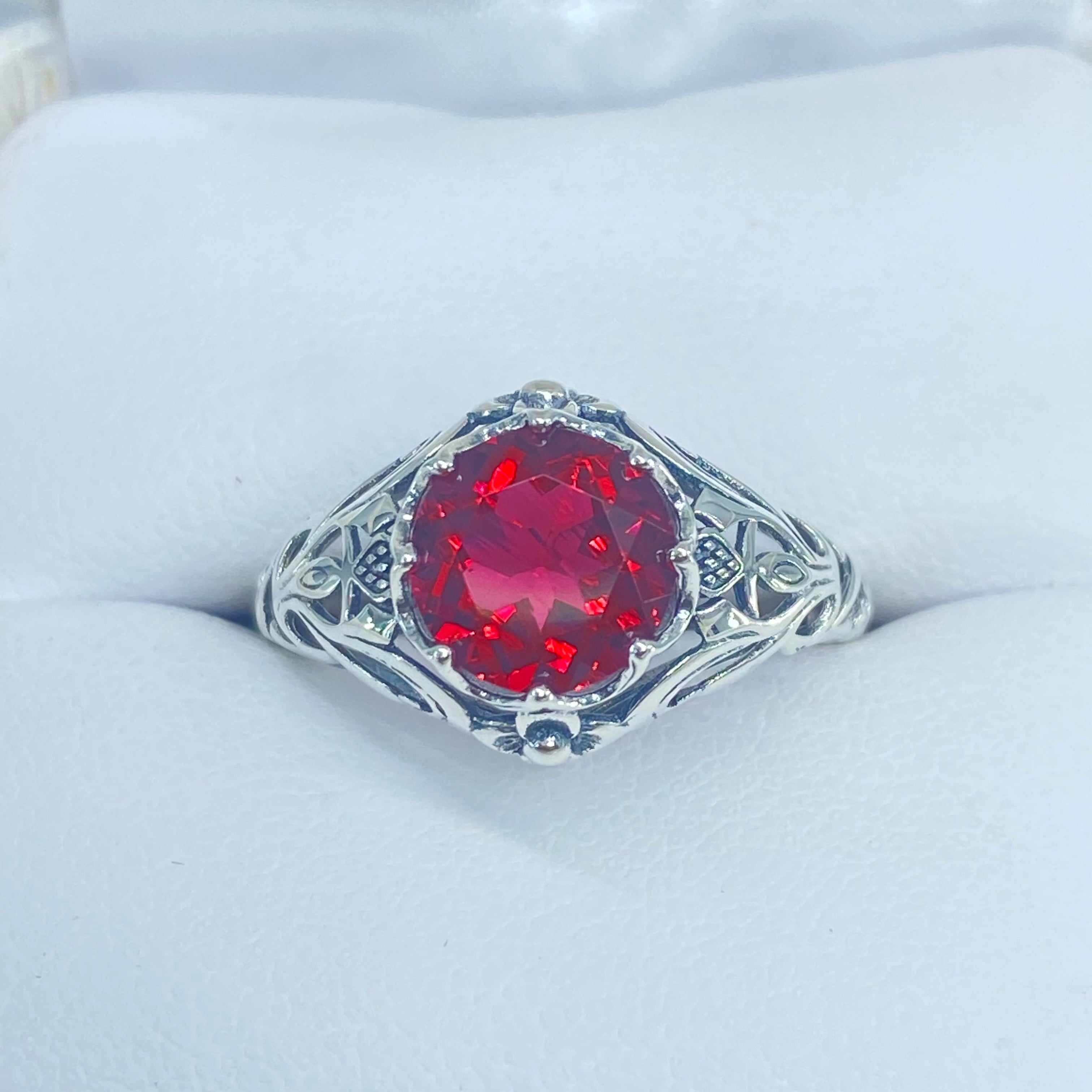 Ruby Ring, Size 7, Daisy Filigree, Victorian Jewelry #D66 - Ready to Ship